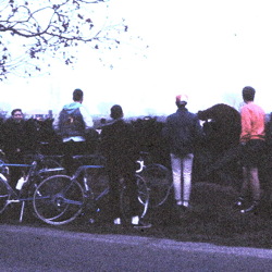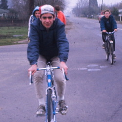 Unknown Rider, Unknown rider, Eldon Rosenow (holding both his Masi and my Peugeot), John Campopiano, Unknown Rider (on a balloon-tire bike), Fred Brockman