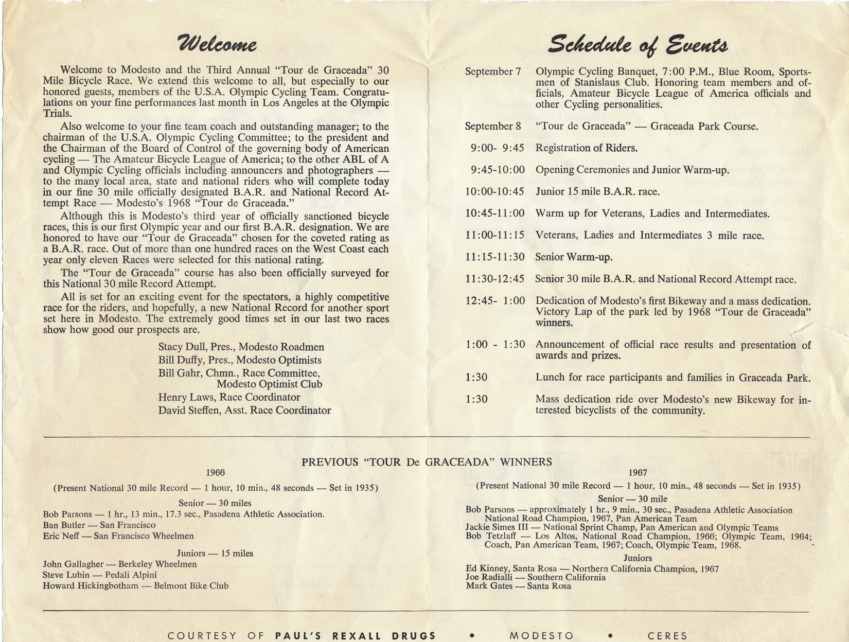 Program for the 1968 Tour de Graceada